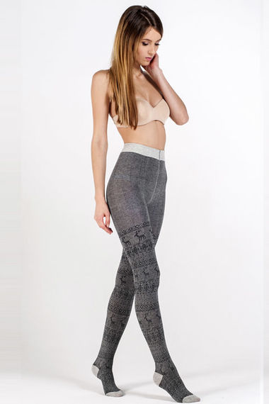 Фото товара 8635, теплые колготки серого цвета с орнаментом